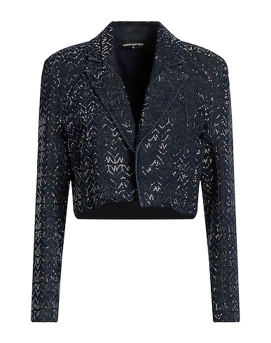 싱글 브레스티드 블레이저, 데님, 장식 디테일 솔리드 컬러, 브랜드 로고, 크리스탈, 라펠, 롱 슬리브, 안감있음, 손세탁, 표백 금지, 건조기 사용불가, 다림질 금지