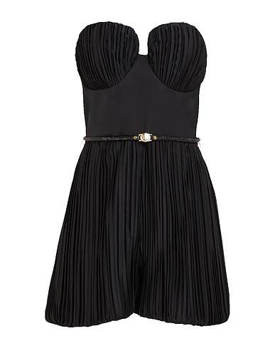 새틴, 주름 가공, 벨트, 장식 디테일 솔리드 컬러, 스위트하트 네크라인, 슬리브리스, 안감있음, 지퍼 여밈, 포켓 없음