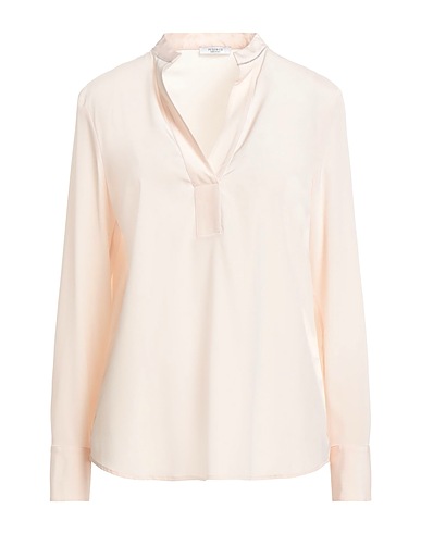 top, crepe, stretchy fabric, solid color with appliqués, embellished, mandarin collar, long sleeves, buttoned cuffs, machine wash or dry clean, do not bleach, do not tumble dry