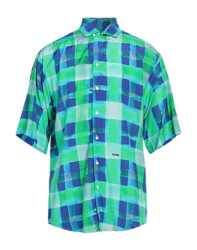 satin, brand logo, checked, classic collar, short sleeves, button fastenings, without pockets, regular-fit shirt