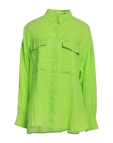 safari shirt, linen, solid color, brand logo, classic collar, long sleeves, buttoned cuffs, button fastenings, two chest pockets, contains non-textile parts of animal origin, machine wash or dry clean, do not tumble dry
