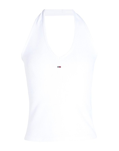 jersey, brand logo, open back, solid color, halterneck, sleeveless, stretch, top
