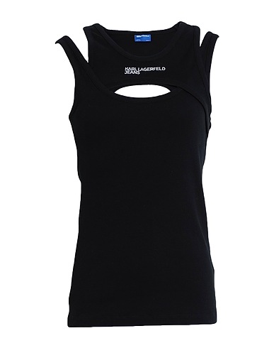 top, jersey, ribbed, brand logo, cutout, solid color, crewneck, sleeveless, stretch, machine wash, do not tumble dry, do not bleach