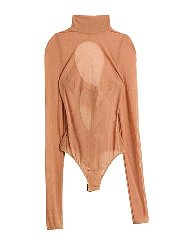 tulle, solid color with appliqués, crystals, open back, mock neck, long sleeves, stretch, dry clean, do not tumble dry