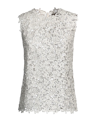 top, lace, metallic, no appliqués, solid color, crewneck, sleeveless, without pockets, dry clean, do not bleach, do not tumble dry, this brand runs small