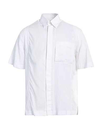 regular-fit shirt, seersucker, poplin, no appliqués, solid color, classic collar, short sleeves, button fastenings, one chest pocket, dry clean, do not bleach, do not tumble dry