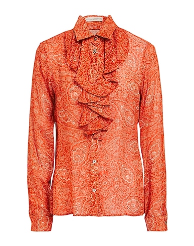 ruched shirt, crepe, paisley-print, no appliqués, classic collar, long sleeves, buttoned cuffs, button fastenings, dry clean, do not bleach, do not tumble dry