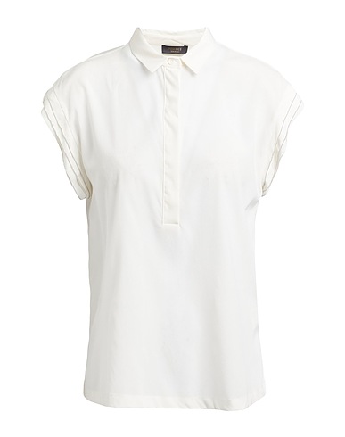 top, georgette, stretchy fabric, solid color with appliqués, crystals, buttoned neckline, short sleeves, concealed button fastenings, side slit hemline, machine wash or dry clean, do not bleach, do not tumble dry