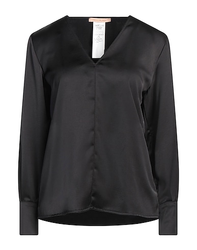 top, satin, solid color, no appliqués, v-neck, long sleeves, machine wash or dry clean, do not bleach, do not tumble dry