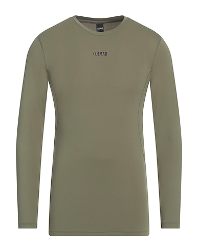 basic tee, synthetic jersey, solid color, brand logo, crewneck, long sleeves, stretch, machine wash, do not bleach, do not tumble dry