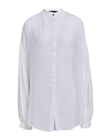 long shirt, gauze, solid color, gathered, mandarin collar, long sleeves, buttoned cuffs, button fastenings, dry clean, do not bleach, do not tumble dry