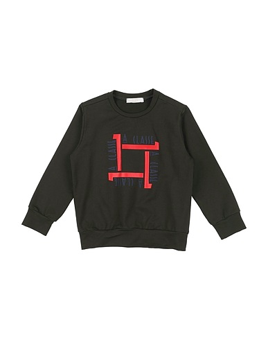 french terry, stretchy fabric, solid color with print, brand logo, crewneck, long sleeves, hand wash, do not bleach, do not tumble dry