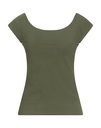 basic tee, synthetic jersey, solid color, no appliqués, scoop