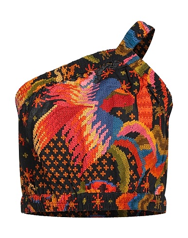 crop top, woven, multicolor, no appliqués, one-shoulder, machine wash or dry clean, do not bleach, do not tumble dry