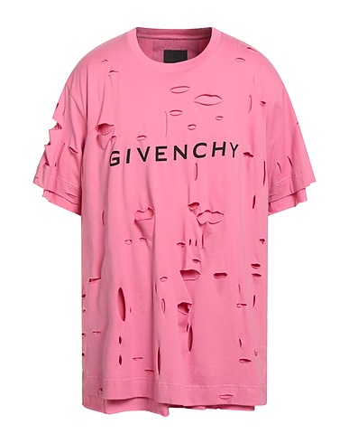 t-shirt, jersey, distressed, solid color with print, cutout, crewneck, short sleeves, machine wash, do not bleach, do not tumble dry, this brand runs large