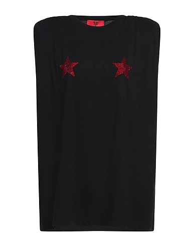 printed t-shirt, jersey, solid color with print, crystals, brand logo, crewneck, sleeveless, shoulder pads, hand wash, do not bleach, do not tumble dry