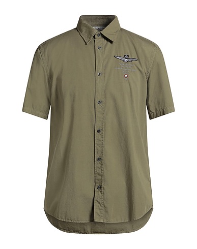 regular-fit shirt, woven, solid color with appliqués, embroidered logo, classic collar, short sleeves, buttoned cuffs, button fastenings, machine wash, do not bleach, do not tumble dry