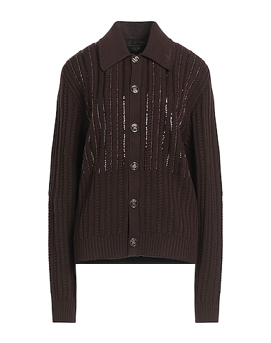 wool, cable-knit, medium-weight knit, solid color with appliqués, embroidered logo, beads, sequins, long sleeves, button fastenings, do not wash, do not bleach, do not tumble dry, do not iron