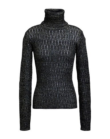 knitted, metallic, lightweight knit, two-tone, no appliqués, turtleneck, long sleeves, hand wash or dry clean, do not bleach, do not tumble dry