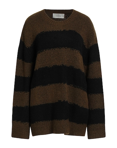 knitted, lightweight knit, striped, no appliqués, crewneck, long sleeves, stretch, hand wash or dry clean, do not bleach, do not tumble dry