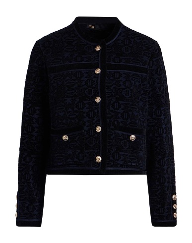 chenille, intarsia-knit, no appliqués, two-tone, long sleeves, patch pockets, hand wash or dry clean, do not bleach, tumble dry