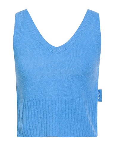 top, knitted, lightweight knit, solid color, brand logo, v-neck, sleeveless, hand wash, do not bleach, do not tumble dry