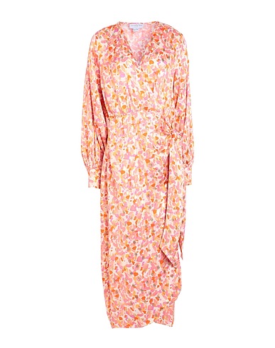 satin, laminated effect, frills, print, multicolor, deep neckline, long sleeves, buttoned cuffs, unlined, self-tie closure, no pockets, shirt dress