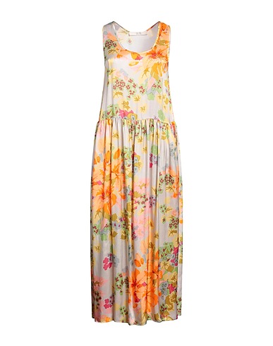 satin, frills, floral-print, scoop neckline, sleeveless, unlined, no pockets, trapeze style
