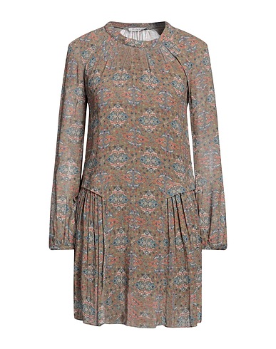 gauze, gathered, multicolor, crewneck, long sleeves, slip to line, no pockets, flared dress