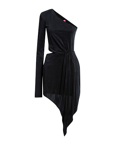 one-shoulder dress, jersey, stretchy fabric, solid color, no appliqués, deep neckline, one-shoulder, shoulder pads, fully lined, without pockets, amp up the glamour with chic designer party outfits for your next event or fun night out