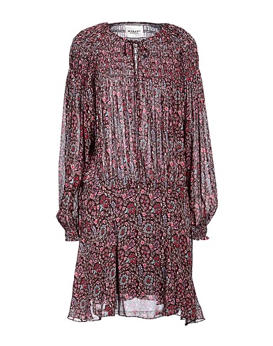 crepe, no appliqués, floral-print, bow-tie neckline, long sleeves, fully lined, drawstring closure, no pockets, dry clean, do not tumble dry, do not bleach, flared dress