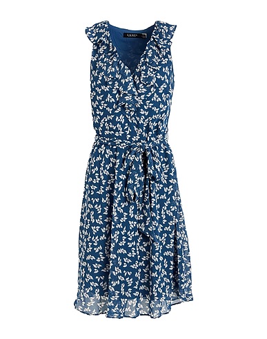 chiffon, ruffles, two-tone, v-neck, sleeveless, fully lined, zipper fastening, hook fastenings, belted waistline, machine wash or dry clean, tumble dry, flared dress, this brand runs large