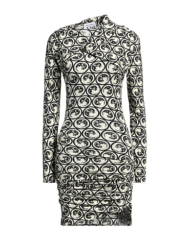 synthetic jersey, brand logo, draped, two-tone, draped neckline, long sleeves, stretch, machine wash or dry clean, do not bleach, do not tumble dry, bodycon dress