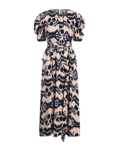 flared dress, crepe, ruffles, multicolor, crewneck, short sleeves, unlined, button fastenings, belted waistline, multipockets, dry clean