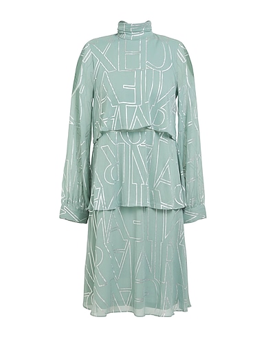 flared dress, crepe, metallic, brand logo, two-tone, bow-tie neckline, long sleeves, zipper fastening, without pockets, hand wash, do not bleach, do not tumble dry