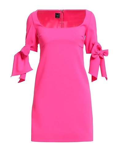 flared dress, crepe, stretchy fabric, solid color, no appliqués, crewneck, short sleeves, fully lined, hook fastenings, zipper fastening, without pockets, machine wash or dry clean, do not bleach, do not tumble dry