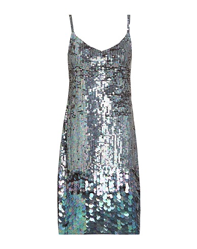 slip dress, tulle, iridescent, sequins, deep neckline, sleeveless, fully lined, stretch, dry clean, do not bleach, do not tumble dry