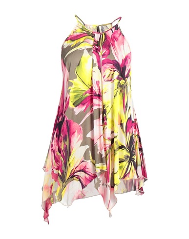 top, satin, floral-print, no appliqués, crewneck, sleeveless, asymmetric hem, hand wash or dry clean, do not bleach, do not tumble dry