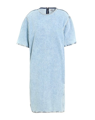 dress, denim, solid color, no appliqués, crewneck, light wash, short sleeves, unlined, zipper fastening, multipockets, machine wash or dry clean, do not bleach, do not tumble dry