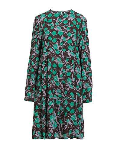 flared dress, crepe, multicolor, no appliqués, crewneck, long sleeves, 1 button, without pockets, hand wash or dry clean, do not bleach, do not tumble dry