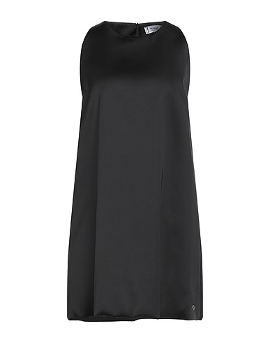flared dress, satin, solid color, brand logo, crewneck, sleeveless, fully lined, zipper fastening, dry clean, do not bleach, do not tumble dry