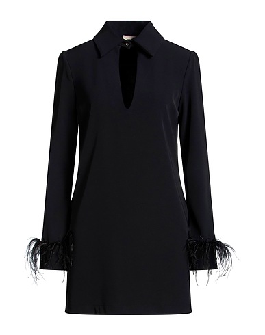 flared dress, crepe, solid color with appliqués, contrasting pocket, embellished, classic collar, long sleeves, buttoned cuffs, 1 button, stretch, machine wash or dry clean, do not bleach, do not tumble dry