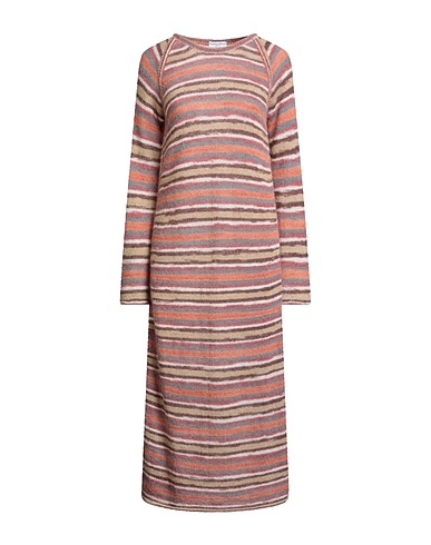 flared dress, knitted, lightweight knit, striped, no appliqués, crewneck, long sleeves, unlined, without pockets, machine wash or dry clean, do not bleach, do not tumble dry