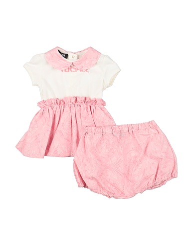 woven, jersey, signature print, brand logo, peter pan collar, short sleeves, snap fastenings, stretchy fabric, 2-piece set, hand wash, do not bleach, do not tumble dry