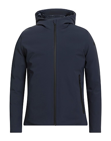 techno fabric, no appliqués, solid color, hooded collar, single-breasted , long sleeves, goose down interior, zipper closure, multipockets, pocket with zipper, stretch, contains non-textile parts of animal origin, single-breasted jacket