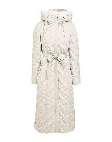down coat, shell, solid color, belt, hooded, long sleeves, elasticated cuffs, goose down interior, snap fastenings, zipper fastening, zipped pockets, contains non-textile parts of animal origin, machine wash or dry clean, do not bleach, do not tumble dry