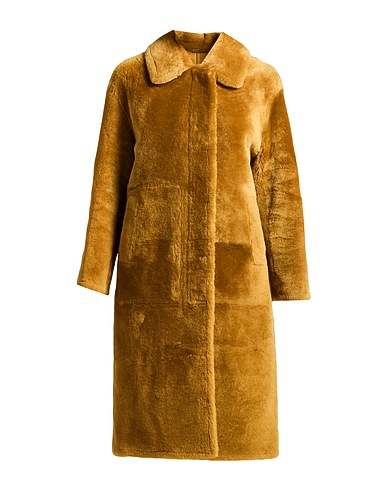 shearling coat, shearling, no appliqués, solid color, classic collar, single-breasted , long sleeves, unlined, button fastenings, multipockets, contains non-textile parts of animal origin, do not wash, do not tumble dry