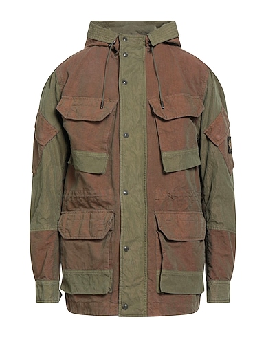 safari jacket, woven, brand logo, two-tone, hooded, long sleeves, unlined, zipper fastening, snap fastenings, multipockets, machine wash, do not bleach, do not tumble dry