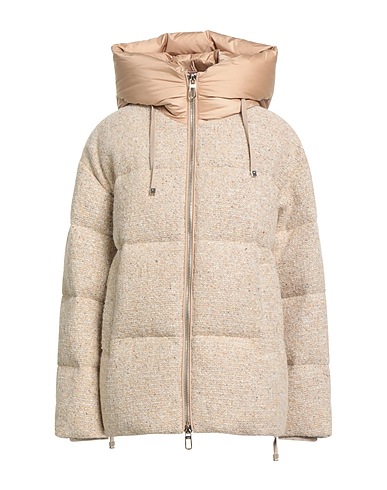 down jacket, tweed, shell, brand logo, knitted trims, two-tone, hooded, long sleeves, goose down interior, heavyweight padding, zipper fastening, multipockets, contains non-textile parts of animal origin, do not wash, do not bleach, do not tumble dry