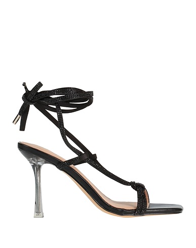 sandals, satin, solid color, crystals, leather lining, ties at ankle, square toe, geometric heel, rubber sole, contains non-textile parts of animal origin
